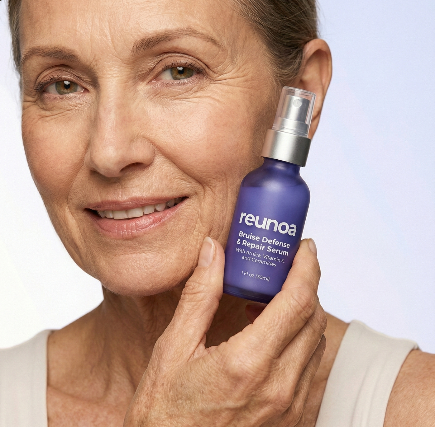 Reunoa is designed to strengthen the skin barrier — the hidden root cause behind "paper skin," tearing, and those stubborn purple spots.